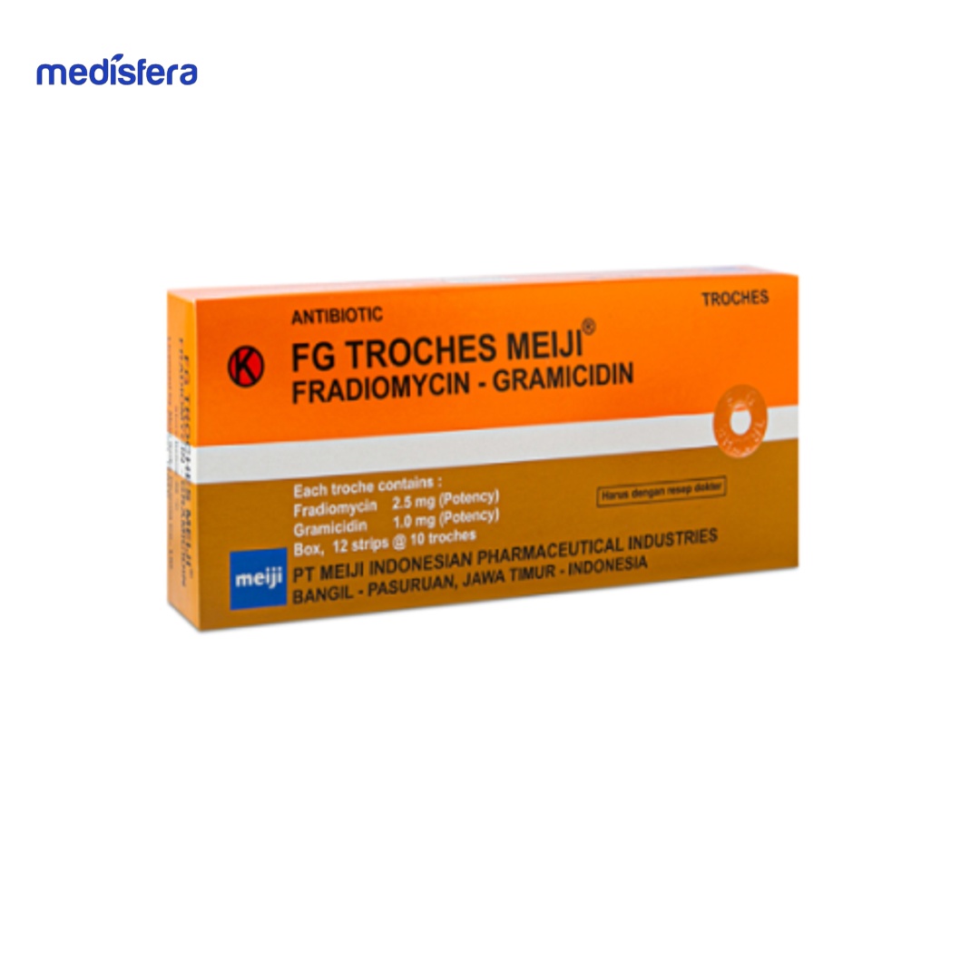 FG TROCHES MEIJI TAB 300S is medication that used for inflammation throat with content utama fradiomycin and gramicidin. this medication can membunuh some jenis bacteria penyebab inflammation that there is in mouth and throat.